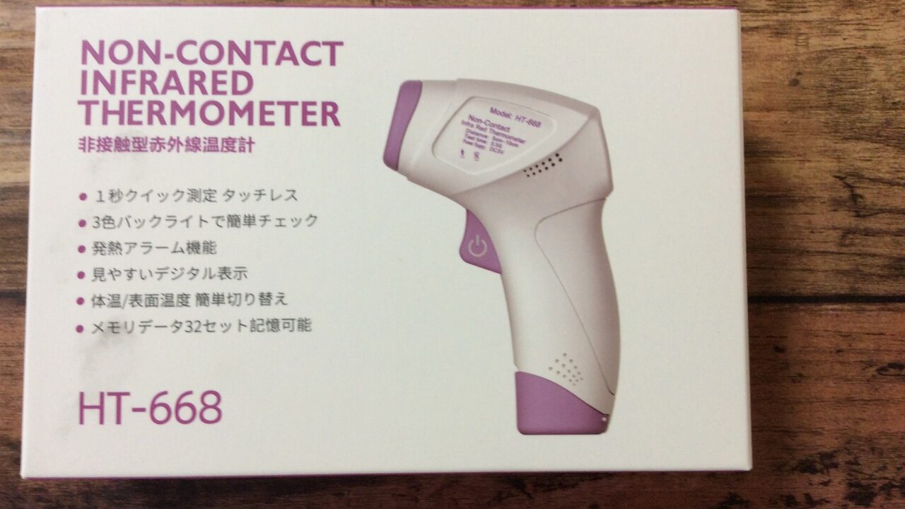 市販の体温計は脇に挟んで、1分ほど何もせずにじっとしていなくては測ることができません。すごく時間がかかるし、たくさんの人が同じ体温計をつかう場面では衛生的に良くないと思うので、非接触温度計を買ってみました。それがこちらです。